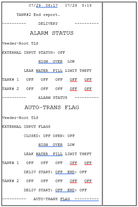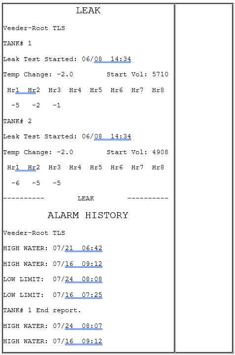 ### Tank Level Sensor (TLS): Tank Monitor Report
